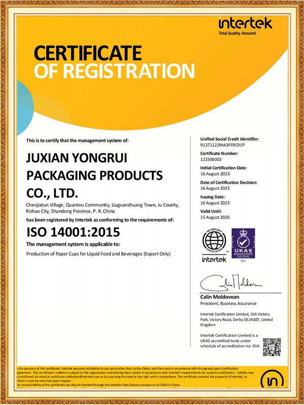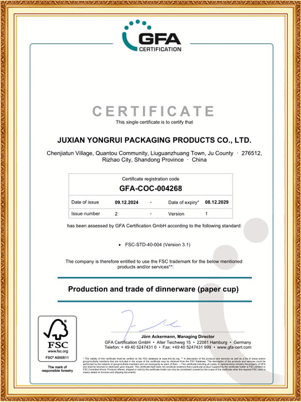 Juxian Yongrui Packaging Products Co., Ltd ha estado profundamente involucrada en el campo del embalaje de papel (vaso de papel desechable y recipiente de papel desechable) durante 20 años, integrándose en investigación y desarrollo, diseño, producción y ventas. Nos comprometemos a ofrecer a los clientes precios más competitivos y soluciones de embalaje diversificadas con excelentes conceptos de calidad y protección del medio ambiente.