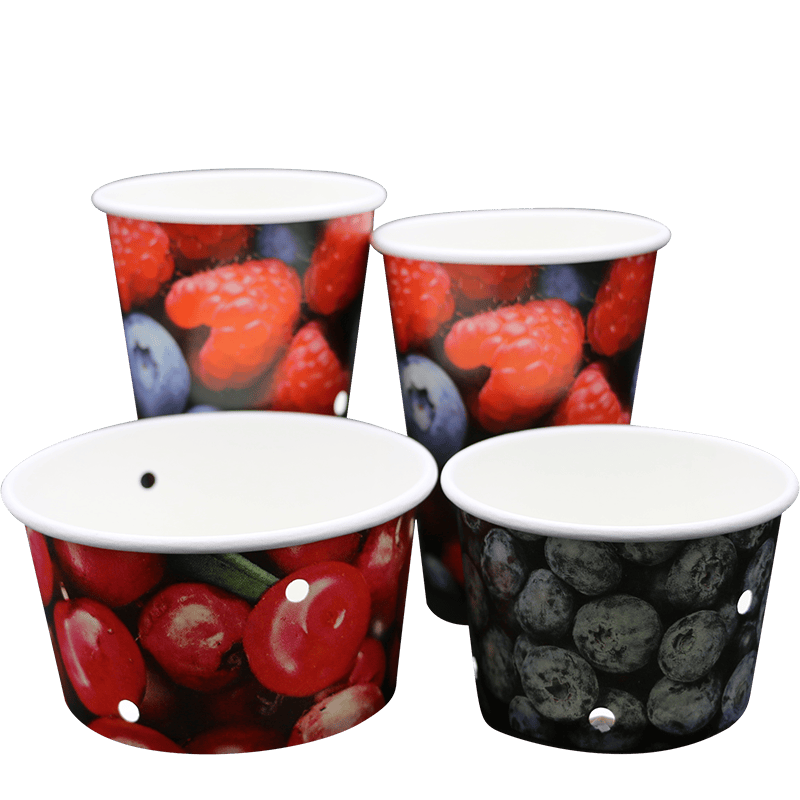 Elaborado con papel base de calidad alimentaria, el recipiente de papel para frutas es seguro, ecológico y resistente. Garantiza que el contenedor mantenga la rigidez estructural y al mismo tiempo permita la ventilación después de su formación. La pared exterior del producto está adornada con patrones de bayas vívidos y brillantes, que son muy llamativos. Esto no sólo atrae fácilmente la atención de los consumidores y aumenta su deseo de compra, sino que también lo hace especialmente adecuado para exhibirlo en supermercados, fruterías y tiendas de productos frescos de primera calidad.                                            Nuestro embalaje no es sólo un contenedor—es una herramienta estratégica para elevar su marca, reducir el impacto ambiental y ofrecer una calidad de producto inigualable. Contáctenos hoy para explorar cómo nuestras innovaciones pueden transformar sus envases de productos frescos.